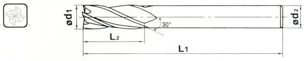 四刃立铣刀以沟槽铣削为主,适用于HRC≤65的碳素钢,模具钢,合金钢,工具钢,不锈钢,热处理钢,钛合金等的加工。